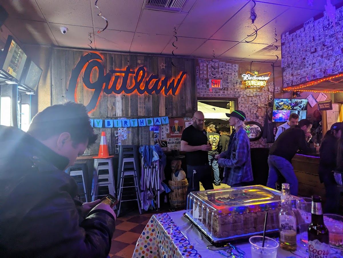 Outlaw Tavern doesn’t shout for attention; instead, it earns it through moments that feel genuine — from the bartender’s playful banter to the way the local crowd makes space for newcomers. TVs are scattered just enough to watch a game without breaking the intimate flow, while the stage and dance floor offer a chance to move when the music truly takes hold.